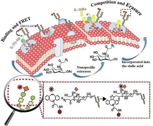 它們的熒光顏色區分明顯:DiI(橙色熒光),DiO(綠色熒光),DiD(紅色熒光)和 DiR (深紅色熒光)這使得他們可以用來對活細胞進行多色成像和流式分析。DiI和DiO可以分別用標準的 FITC和TRITC的濾光片。DiD可以用 633 nm He–Ne 激光器激發,有著比DiI更長的激發波長和發射波長,在細胞和組織染色中更有價值。 DiR的紅外熒光可以穿透細胞和組織,在活體成像中用來示蹤。